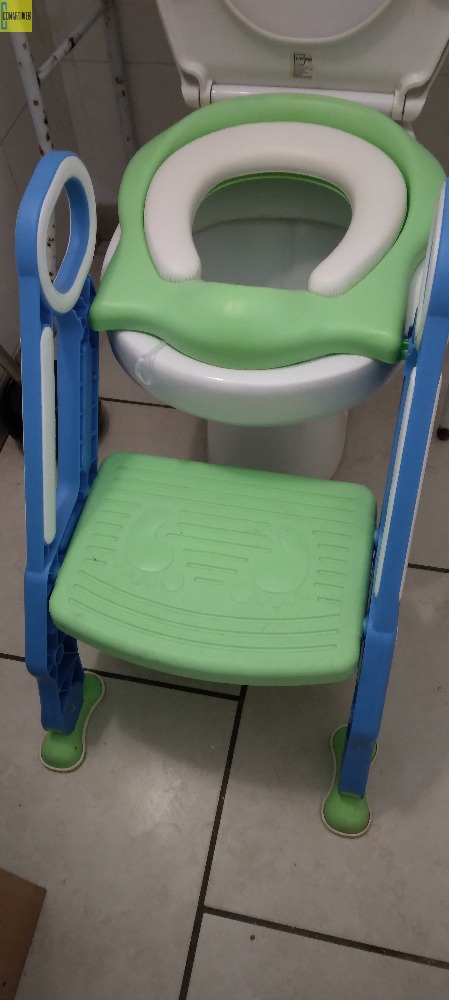 rehausseur de toilette pour l apprentissage des enfants, très pratique jusqu'a 5 ans se pli sur le coté des WC ne prends pas de place.