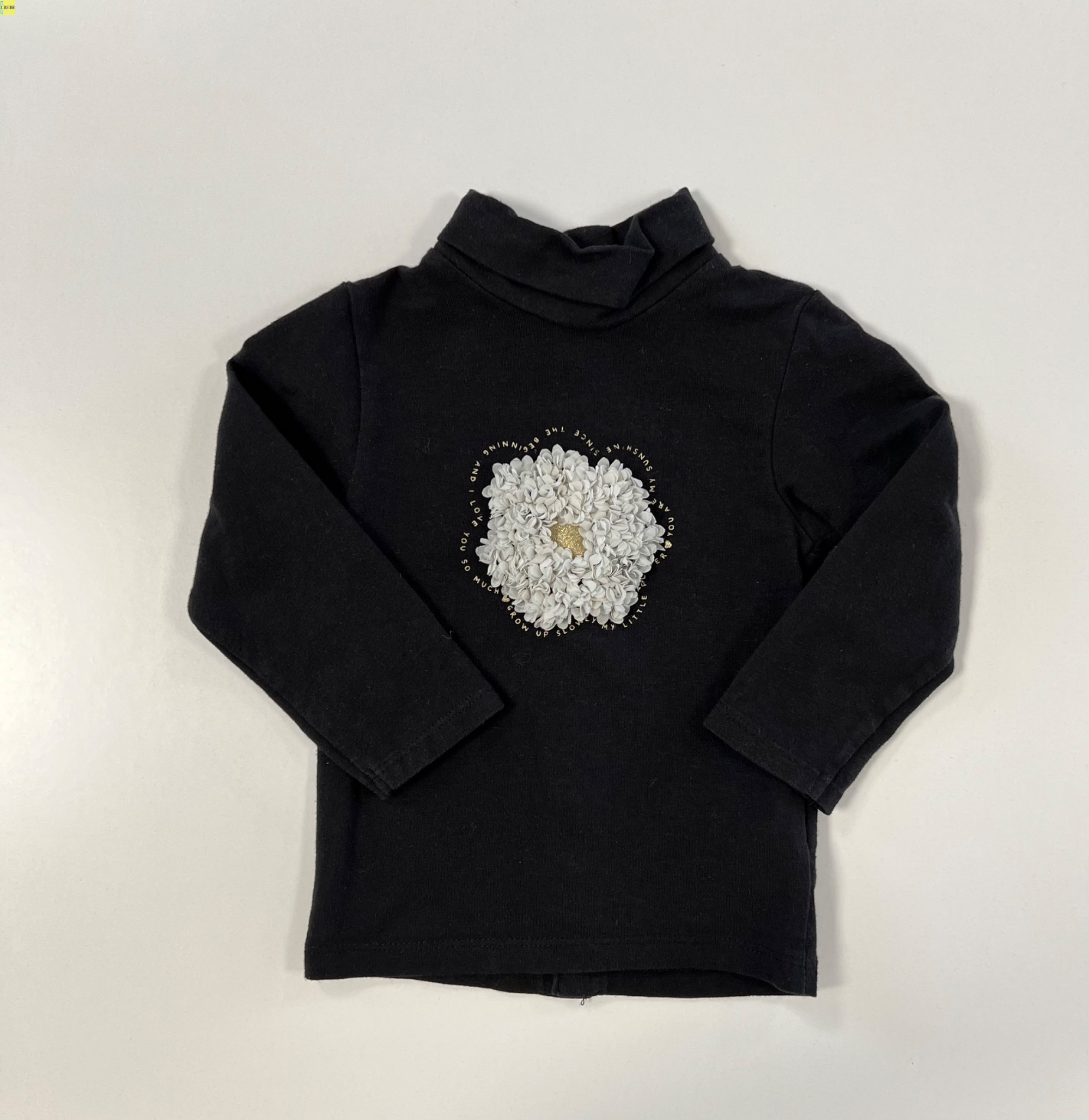 Haut noir avec une fleur en très bon état.