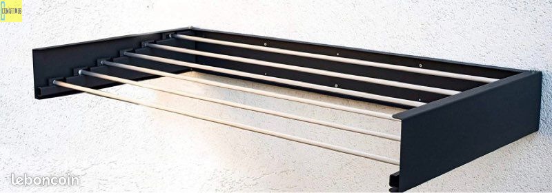 je vends un séchoir a linge mural extensible & pliable Intérieur ou Extérieur Grage Buandrie Dalle de Bain etc